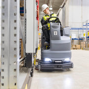 De standaarduitrusting van onze B 150 R Bp opzit-schrobzuigmachine omvat een rolborstelkop met een werkbreedte van 85 cm, een zijborstel en een robuuste aluminium zuigmond.